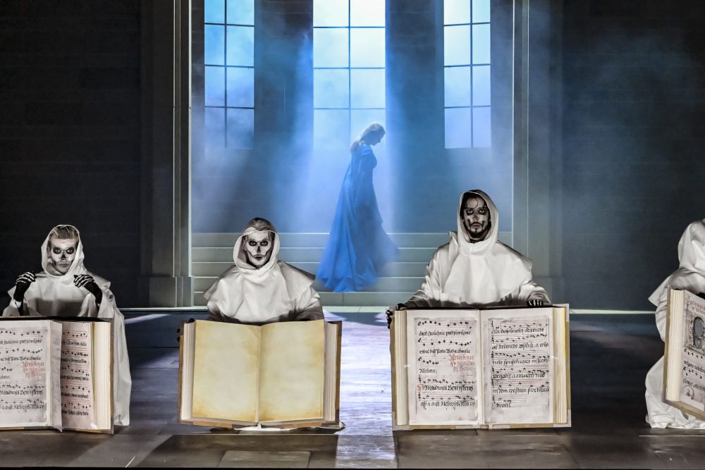 Wenn musikalisch bereits sämtliche Maßstäbe gesetzt zu sein scheinen, entsteigt auch Kateřina Kněžíková als Hedvika der Gruft und macht sich mit ihrem hellen, gleichermaßen schlanken wie kräftigen Sopran und mit einer phänomenalen Höhe zur Protagonistin des Abends. Glücklicherweise kann sie den Schlossherrn Vok rechtzeitig von ihrer Liebe zu ihm überzeugen. Und glücklicherweise entreißt der Klosterbruder Beneš dem Teufel die ihn darstellende Puppe, nachdem er sich mittels Beichte beim Burgvogt Michálek (komödiantisch: Vít Nosek) vom Bösen losgesagt und sein Leben endlich in die eigenen Hände genommen hat.