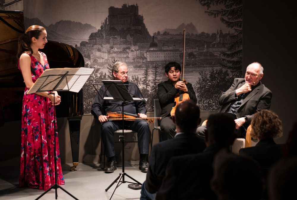 Gegen Ende des dritten Satzes von Wolfgang A. Mozarts Duo in G-Dur (KV 423) regt sich beim Publikum ein kollektives Schmunzeln. Der Violinist Christian Altenburger spielt seinen Part makellos, denn der ist freilich ein Profi. Aber für ihn hatte Mozart diese fordernde Fingerübung nicht geschrieben. Zuvor hatte Claus-Christian Schuster in seinem musikalisch begleiteten Vortrag die Hintergrund-Story erzählt: Michael Haydn hatte vom Salzburger Erzbischof Hieronymos Colloredo den Auftrag für sechs Duos für Violine und Bratsche erhalten, nach vier Kompositionen war seine Schaffenskraft allerdings erschöpft. Also bat er Mozart, die restlichen zwei Werke gleichsam als „Ghostwriter“ zu übernehmen – was dieser auch tat. Bekanntlich war das Verhältnis zwischen dem Erzbischof und dem Wunderkind nicht das allerbeste, also brachte Mozart den guten Mann, für den der Violin-Part gedacht war, mit seiner Komposition ordentlich ins Schwitzen.