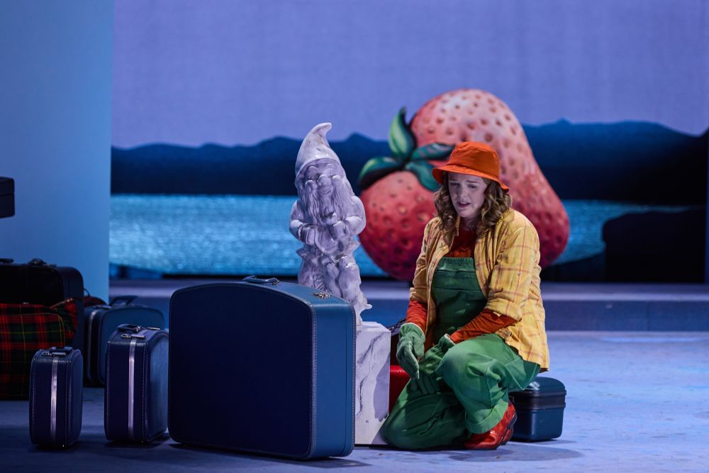 Zum Beispiel Chloë Morgan als gärtnernde Gräfin, die ihre Ausnahmegefühle schon mal in die A-cappella-Koloraturen der «Zauberflöten»-Königin legt und auch sonst höchst differenziert und eindringlich singt. Sergei Nikolaev lässt mit seinem schmelzenden Tenor fast vergessen, dass er als Gewaltmensch und Egoshooter eigentlich der Unsympath des Stückes ist. Die Schwedin Caroline Ottocan, die vom Nürnberger Opernstudio direkt in das Ensemble verpflichtet wurde, konturiert als Arminda einen Frauentyp, der sich nimmt, was sie will und keine falsche Bescheidenheit an den Tag legt. Erneut glänzt Corinna Scheurle in einer Hosenrolle: Mit ihrem sinnlich-beweglichen Mezzo zeichnet sie die Verliererfigur des Ritters Ramiro intensiv nach. Und nicht von schlechten Eltern ist auch der Spielbass von Demian Matushevskyi, der als loyaler Diener der verkleideten Gräfin fungiert. Als Miniausgabe von Nina Hagen: Clarissa Maria Undritz als aufsässiges wie gefühlsmächtiges Hausmädchen Serpetta. Und weil die Regisseurin genau auf dieser Bühne als Statistin ihre irre Gesangskarriere startete, lässt sie Ottilie Feinweber und Michael Dudek als Gartenpersonal den gesamten Abend über heftig Koffer räumen, Möhren schälen oder mit Forken Gartenzwerge aus Marmor verräumen. Und aus dem Souffleusenerdhügel robbt sich auch immer wieder ein kecker Maulwurf heraus.
