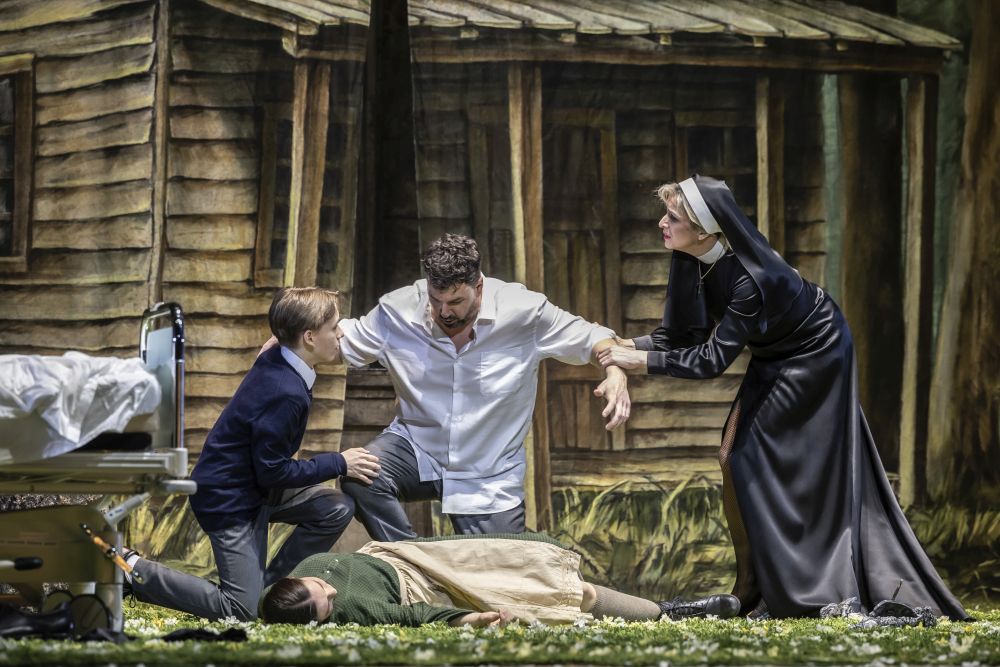 Von den Blumenmädchen umgarnt, gestaltet Eric Cutler einen Parsifal, dem die vergleichsweise tiefe Tessitura der Partie entgegenkommt. Sein heller Tenor bleibt bewusst schlank, vermeidet allzu heldentenorales Prahlen und überzeugt gerade in den leisen Momenten durch feine Gestaltung. Die Spitzentöne sitzen sicher, ohne forciert zu wirken – ein bemerkenswert kontrolliertes Rollendebüt. Das eigentliche Gravitationszentrum des Werkes ist jedoch Gurnemanz. Als solcher trägt Hausmatador Georg Zeppenfeld mit beeindruckender Textverständlichkeit und einer organisch entwickelten Figurenzeichnung in seiner Paraderolle große Teile der Aufführung. Nie wirkt er – wie nicht selten andere in dieser Rolle – besserwisserisch belehrend; vielmehr entsteht die Figur aus dem Moment heraus, in einer Mischung aus Würde und schlichter, stimmschöner Präsenz.
