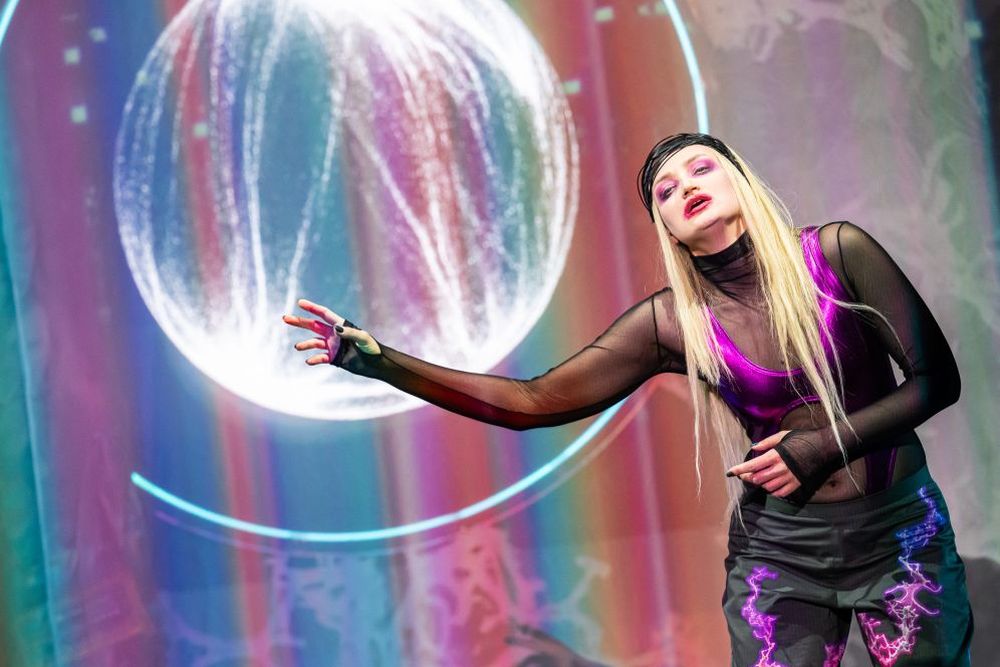 Das verdankt man auch der hybriden Kongenial Tätigkeit, Kollegialität und Furchtlosigkeit des Produktionsteams um die eine solche Kooperation verdichtende Regisseurin Nele Lindemann mit Zana Bosnjak (Ausstattung), Piero Glina (Video), Katharina Fritsch (Regie-Mitarbeit) und Ballettdirektor Michal Sedláček (Choreografie). Bestechende Idee: Das Spielwerk ist eine Big-Data-Resonanzmaschine mit den Menschen als Synapsen zur physischen Welt. Das Brain-Fiction-Fluidum macht sich auf der Bühne prächtig. Die menschlichen Strampelversuche in den Fängen von KI, Social Media und Risiken der Entpersönlichung springen ins Auge. Die Projektionen wechseln von Wurzel- und Zellenornamenten zu nächtlichen Skylines und Klangvisualisierungen. Alle Figuren tragen Kostümhülsen aus Manga- und Space-Opera-Ansichten. Körperlichkeit und Berührungen sind atavistische Relikte aus der vormodernen Steinzeit. Die „Bürger“-Figuren operieren und stochern als Maulwurf-Ingenieure mit Brillenlichtern an allem möglichen herum. Gegenbild ist die Prinzessin – ein Cyborg mit Rest-Haarbüscheln am fast kahlen Schädel, unappetitlicher Herpes und herzerbarmender Entkräftung. Dieses Wesen saugt alles an Hass, Häme und Sehnsucht aus den digitalen Bubbles auf und verdünstet es als nach Schönheit riechender Negativenergie. Franziska Krötenheerdt füllt diese hochdramatische Höhensopran-Herausforderung mit faszinierendem Eisfeuer – eindeutig eine der überragenden Musiktheater-Leistungen dieser Spielzeit.