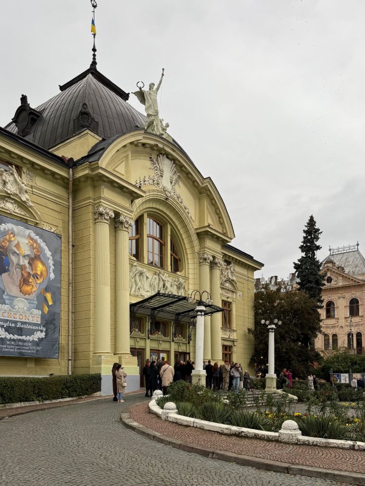 Das zeigt auch das Olha-Kobyljanska-Stadttheater. Das Haus, 1905 als baugleiches Pendant zum Stadttheater Fürth eröffnet und vom Wiener Architekturbüro Fellner & Helmer errichtet, atmet noch den Geist der Habsburger Zeit: ein kleiner, hell getünchter Bruder des Wiener Volkstheaters, mitten in einer Stadt, deren Straßen heute Namen wie Schewtschenko oder Kobyljanska tragen – Zeugen einer ukrainischen Selbstvergewisserung, die über Jahrhunderte hinweg erkämpft werden musste.