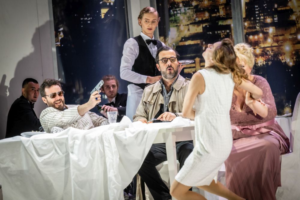 Nichts, was Spaß macht, darf der arme Barak, wunderbar gelassen und im mehrfachen Wortsinn tiefgründig interpretiert von Giorgos Kanaris. Sogar das Radio stellt ihm das Hauskreuz mehrmals aus – und damit die Musik aus dem Graben auf stumm. In solchen Momenten, wenn der Traditionalist Herzkammerflimmern bekommt (was bitte nicht als Angriff, nur als Faktum gewertet sein soll), erweist sich Konwitschny als Musikliebhaber durch und durch.