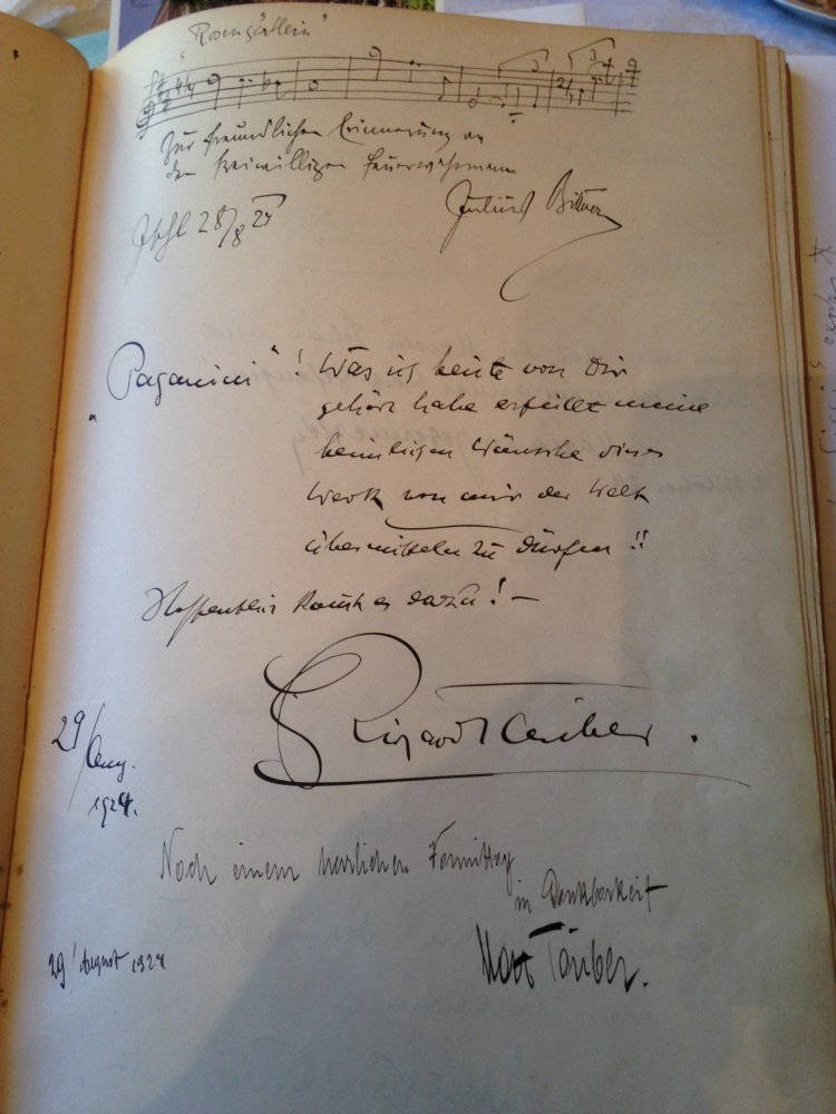 Das muss ich noch erzählen! Im Jahr ’14, 2014, ist ein Packerl gekommen, genau an die Adresse Hackhofergasse 18, 1190 Wien. Aber der Absender hat gefehlt. Mein Mieter Thomas hat gesagt: „Mach es auf!“ Kommt ein Bild heraus, der Franz Lehár, und ein Brief. Die Dame schreibt: „Ich bin 95 Jahre alt. Ich habe das Bild so behütet und ich möchte nicht, dass es in schlechte Hände kommt.“ Übers Konsulat hat sie erfahren, dass es in Wien ein Lehár-Haus gibt. Deswegen hat sie das Bild hierher geschickt, weil, wie sie 20 Jahre alt war, hat sie beim Schulabschluss in der Schweiz den „Gold und Silber“-Walzer getanzt und hat erfahren, dass Franz Lehár schwer krank im Krankenhaus liegt [in der Schweiz]. Da hat sie sich gedacht, sie schreibt ihm das, vielleicht hat er eine Freude. Das war auch so, als Antwort auf den Brief hat er das Bild geschickt und darunter Noten vom „Gold und Silber“-Walzer [komponiert 1902 für eine Faschingsredoute in Wien]. Ich bin noch in Kontakt mit ihr. Wir schreiben uns. Sie ist jetzt 100 Jahre alt und sitzt im Lehnstuhl und freut sich über Briefe von mir und schreibt auch zurück.