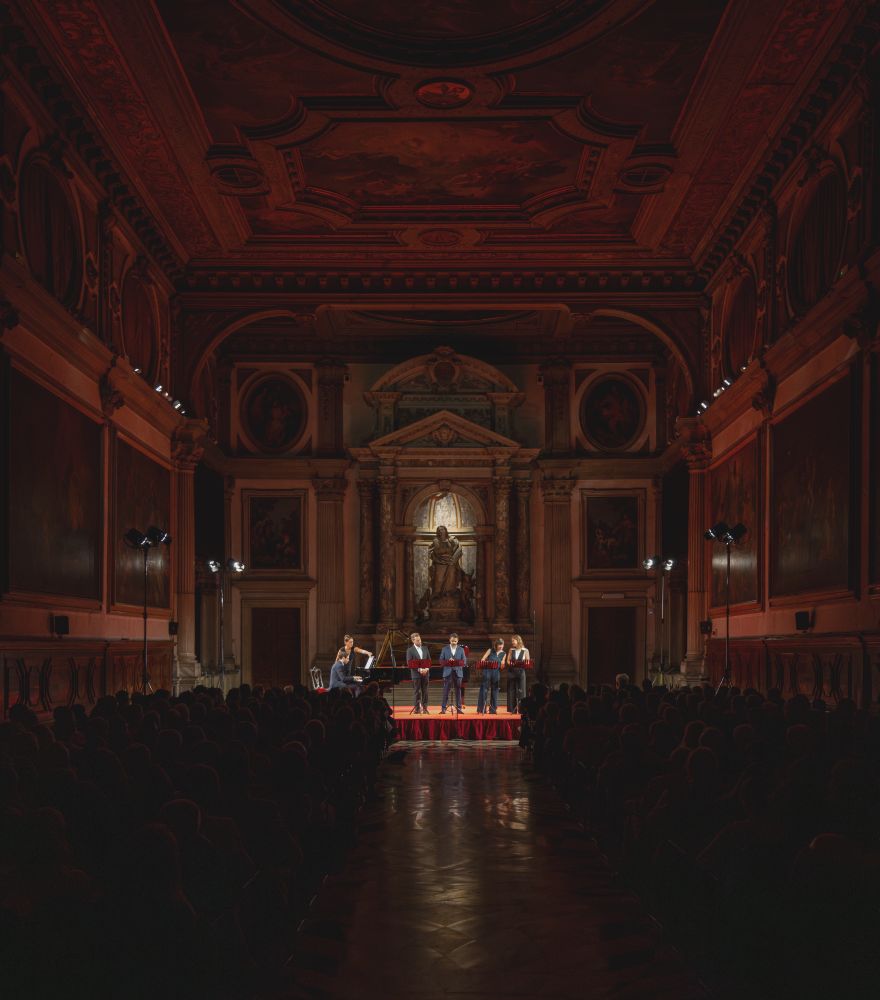 Diese Auswahl ist mehr als ein buntes Nummernkabarett: Sie zeigt in komprimierter Form, wie breit das Spektrum der französischen „leichten Muse“ tatsächlich ist. Zwischen den ironisch funkelnden Stücken eines Hervé, den pointierten Buffo-Duetten Offenbachs und den eleganten, salonhaften Miniaturen von Planquette oder Roger spannt sich ein Bogen, der von der drastischen Parodie bis zur feinen Gesellschaftssatire reicht. Gerade im Nebeneinander wird sichtbar, dass Operette nicht einfach ein Nebenprodukt der großen Oper ist, sondern eine eigenständige, vielgestaltige Kunstform, die mit Tonfall, Rhythmus und Textwitz den Puls einer ganzen Epoche einfängt. Und dann ist da der Saal: der Kapitelsaal der Scuola Grande San Giovanni Evangelista. Gold, Fresken, sakrale Gravität – vor dem Altar mit Kreuzreliquie und einer Statue des Evangelisten Johannes findet parodistische Operette statt. Ein herrlicher Widerspruch, fast ein kleines Spektakel für sich.