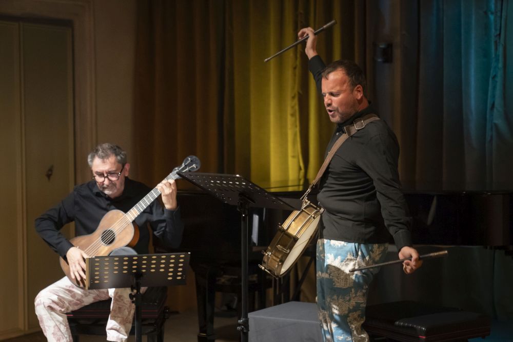 Sanchez begleitet auf einer romantischen Gitarre des 19. Jahrhunderts – zart, intim, manchmal fast flüsternd. Das Timbre erinnert daran, dass diese Musik nie für große Säle gedacht war, sondern eben für kleine Räume, für das gesellige Miteinander bei Wein und Tabak. Es muss damals schon sehr lustig zugegangen sein. Mauillon kostet jedenfalls jede Pointe aus, ohne je ins Derbe zu kippen und jener Teil des Publikums, der des Französischen mächtig ist, biegt sich vor Lachen.