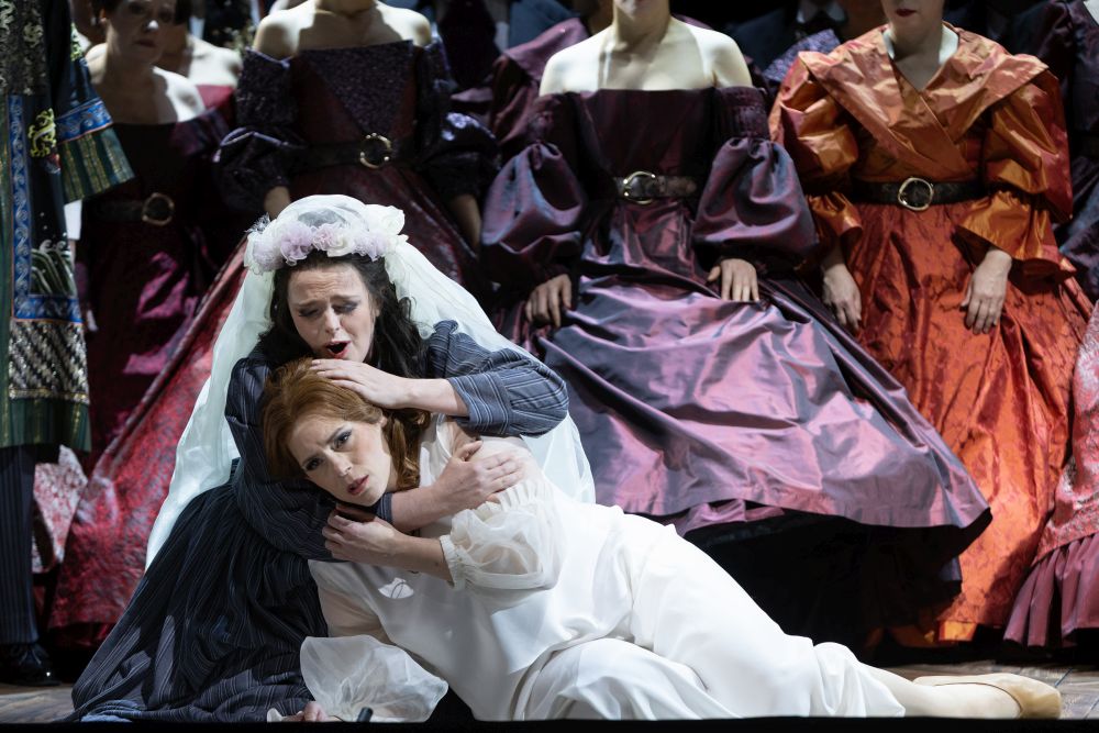 Drei sind die Rätsel, einer ist der Tod – und Turandot? Das sind ganz viele: Frauen in der Geschichte, die das Schicksal der Ehe eher erdulden, als dass sie Glück und Erfüllung in ihr finden. Wie der Inbegriff bürgerlich-gesellschaftlicher Ehemoral schiebt sich zu Beginn von Kateryna Sokolovas neuer Nürnberger «Turandot»-Inszenierung das 19. Jahrhundert ins Bild. Eine feine Hochzeitgesellschaft lässt Krinolinen rauschen, reckt drohend ihre Hochsteckfrisuren in den Himmel, nur wie das Echo aus einem chinesischen Märchen dringt das Gebimmel von Gongs und Xylophonen aus dem Orchestergraben. Schon bei den ersten Akkorden ist viel los auf der Staatstheaterbühne, die im Laufe des Abends noch häufiger den Eindruck machen wird, sie wäre zu klein, um das Aufgebot der Massen, die unüberschaubare Vielzahl der szenischen Aktionen, das viele Gerenne und Gerangel, die Parallelität der zeitlichen Epochen und ihrer Protagonisten zu fassen. Die ukrainische Regisseurin fordert den selektiven Blick heraus; schon früh verkneift man sich besser das allzu ausführliche Verweilen im Detail, zumal mit der ausdrucksstarken Tänzerin Stephanie Roser eine weitere Turandot-Inkarnation um permanente Aufmerksamkeit buhlt. Besser also, sich auf Grundsätzliches zu konzentrieren.